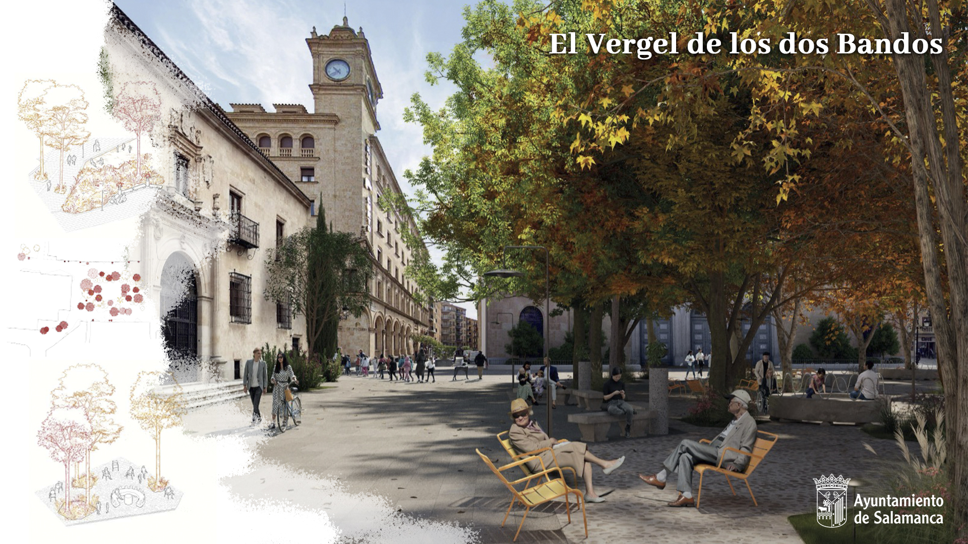 El concejal de Fomento y Urbanismo del Ayuntamiento de Salamanca, Fernando Carabias, ha dado a conocer hoy la propuesta ganadora del concurso de ideas convocado para acometer la renovación la plaza de Los Bandos. ‘El vergel de los dos bandos’ es el nombre del planteamiento que obtuvo la mayor puntación por parte del jurado y que será desarrollado por su autor ajustándose a los 78 criterios marcados en la Evaluación de Impacto Patrimonial preliminar y que será valorada por el grupo de trabajo formado por el Ministerio de Cultura, ICOMOS España, la Dirección General de Patrimonio de la Junta de Castilla y León y el Ayuntamiento de Salamanca.