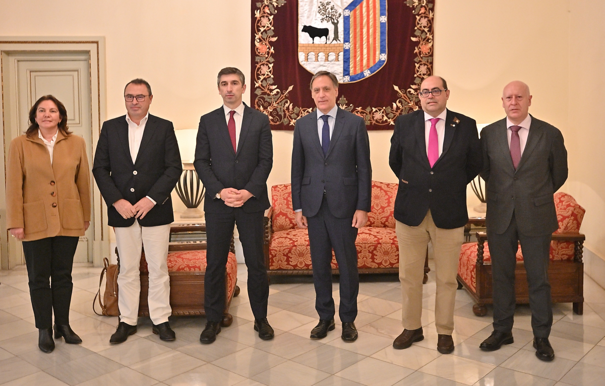 El alcalde de Salamanca, Carlos García Carbayo, ha recibido hoy en el consistorio a representantes del Puerto de Leixões, quienes visitan la ciudad para conocer de primera mano los avances que se están produciendo en la Plataforma Logística Intermodal de la ciudad, cuya urbanización está prevista para este año.
