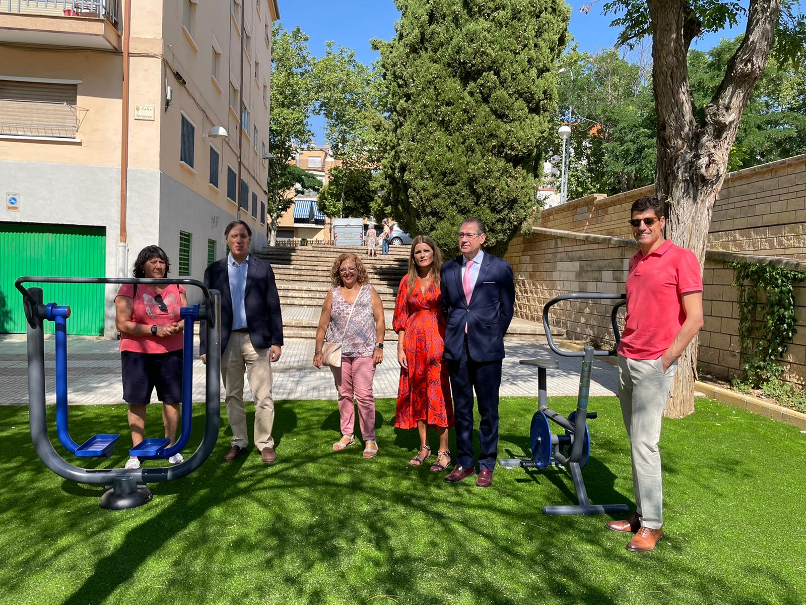 En concreto, el parterre se ha tapizado con césped sintético de acabado deportivo para convertirlo en una zona de ejercicios con bicicletas, elíptica, caminador y patines. Por otro lado, el parterre de la calle Sancho Panza se ha convertido en una nueva zona infantil para los más pequeños, con pavimento de césped sintético sobre base amortiguante donde se ha instalado una cama elástica, un carrusel y un tren locomotora para los más pequeños. La actuación se ha complementado con la instalación de bancos accesibles, papeleras y una fuente bebedero.
