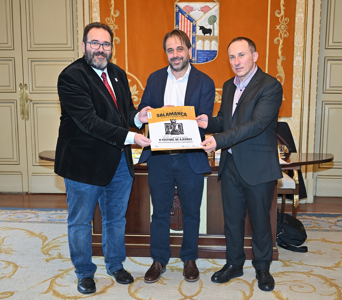 El evento, que se celebra del 25 al 30 de noviembre y cuenta con una atractivo programa de actividades, ha sido presentado en el Ayuntamiento de Salamanca por Fernando Castaño, concejal de Turismo, que ha estado acompañado de Amador González de la Nava, presidente de la Asociación de Ajedrez de Salamanca y Julio Cordero, director de la oficina del VIII Centenario de la USAL.