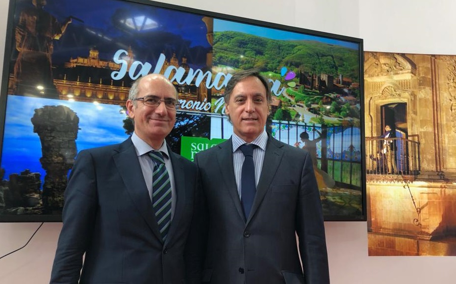 El alcalde de Salamanca, Carlos García Carbayo, y el presidente de la Diputación Provincial de Salamanca, Javier Iglesias, han presentado hoy en Intur el nuevo spot con el que el Patronato Provincial de Turismo reúne los atractivos de ciudad y provincia en un audiovisual de cuatro minutos y medio de duración.