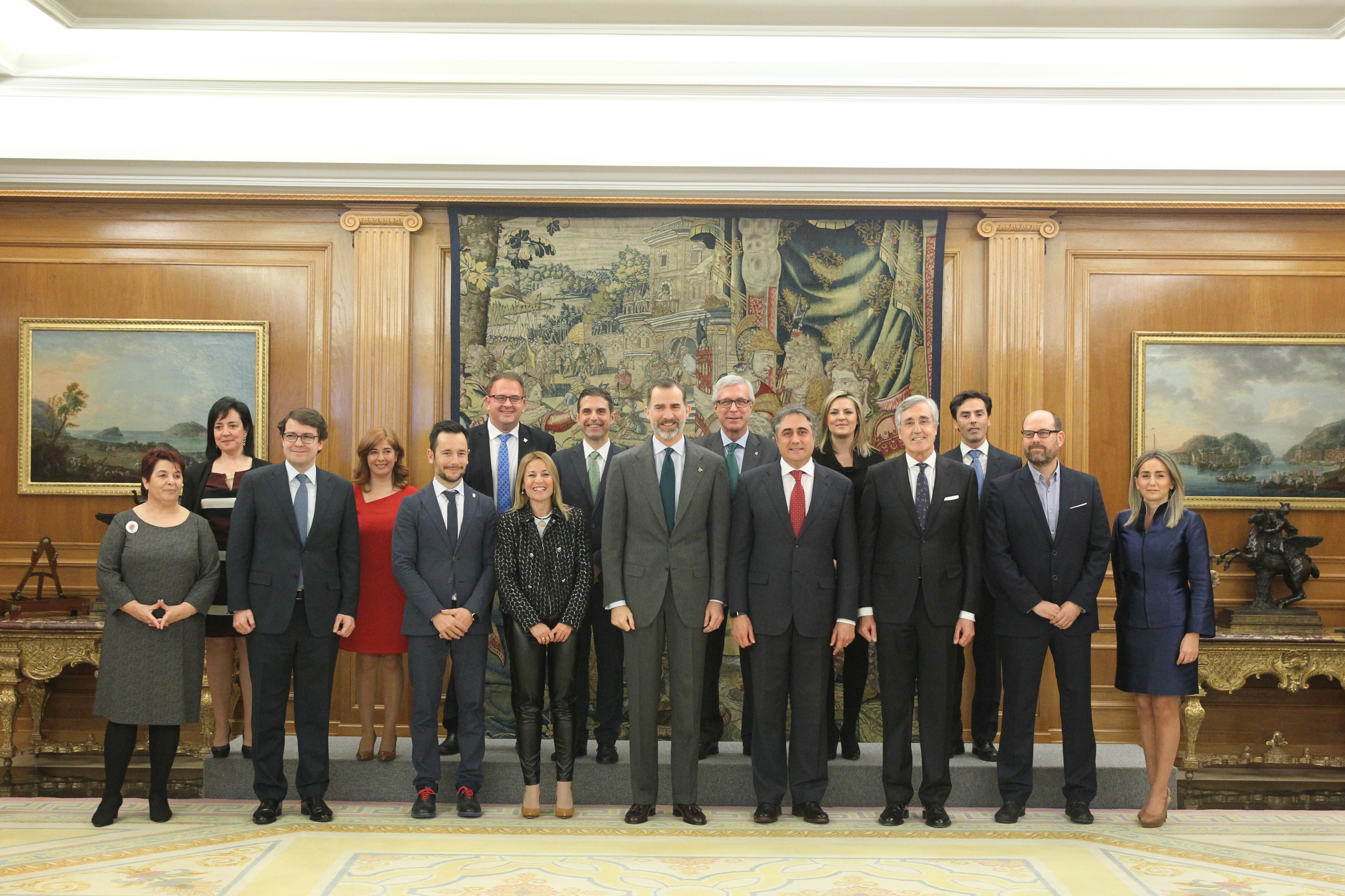 Su Majestad el Rey recibió hoy en el Palacio de la Zarzuela a los alcaldes del Grupo Ciudades Patrimonio de la Humanidad de España, entre ellos al regidor de Salamanca, Alfonso Fernández Mañueco.
