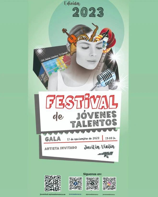 El Centro Municipal Integrado Julián Sánchez ‘El Charro’ acogerá esta tarde, a partir de las 19:00 horas, la gala de la sexta edición del Festival de Jóvenes Talentos, en la que actuarán los finalistas en las diferentes categorías y se desvelará los nombres de los ganadores, que se repartirán un total de 10.000 euros en premios. Esta cita estará animada por el conocido artista salmantino, el violinista JaviLin.