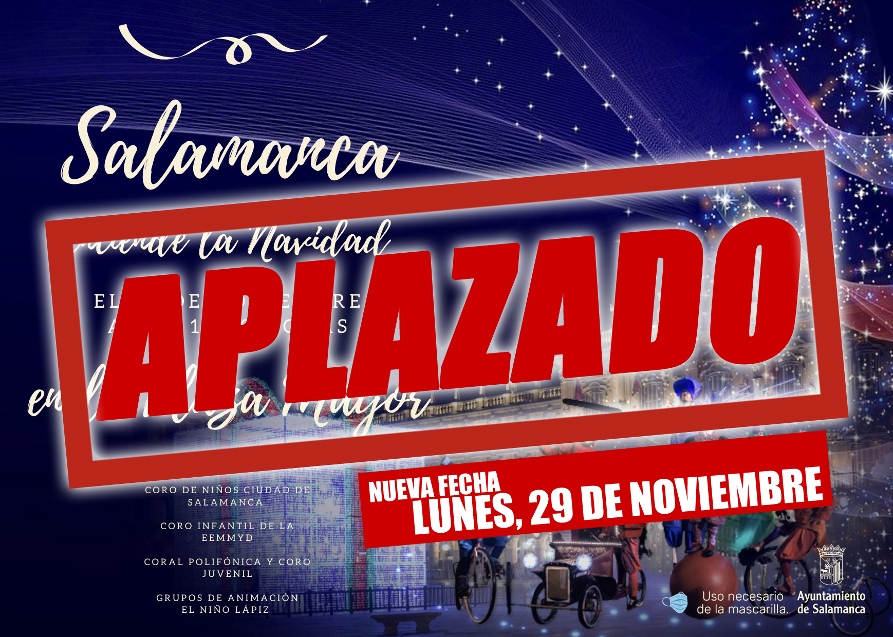 El acto cultural previsto con motivo del encendido de la iluminación de Navidad se aplaza al próximo lunes, día 29 de noviembre, debido a la climatología adversa que impide el montaje técnico y desarrollo normal del evento.