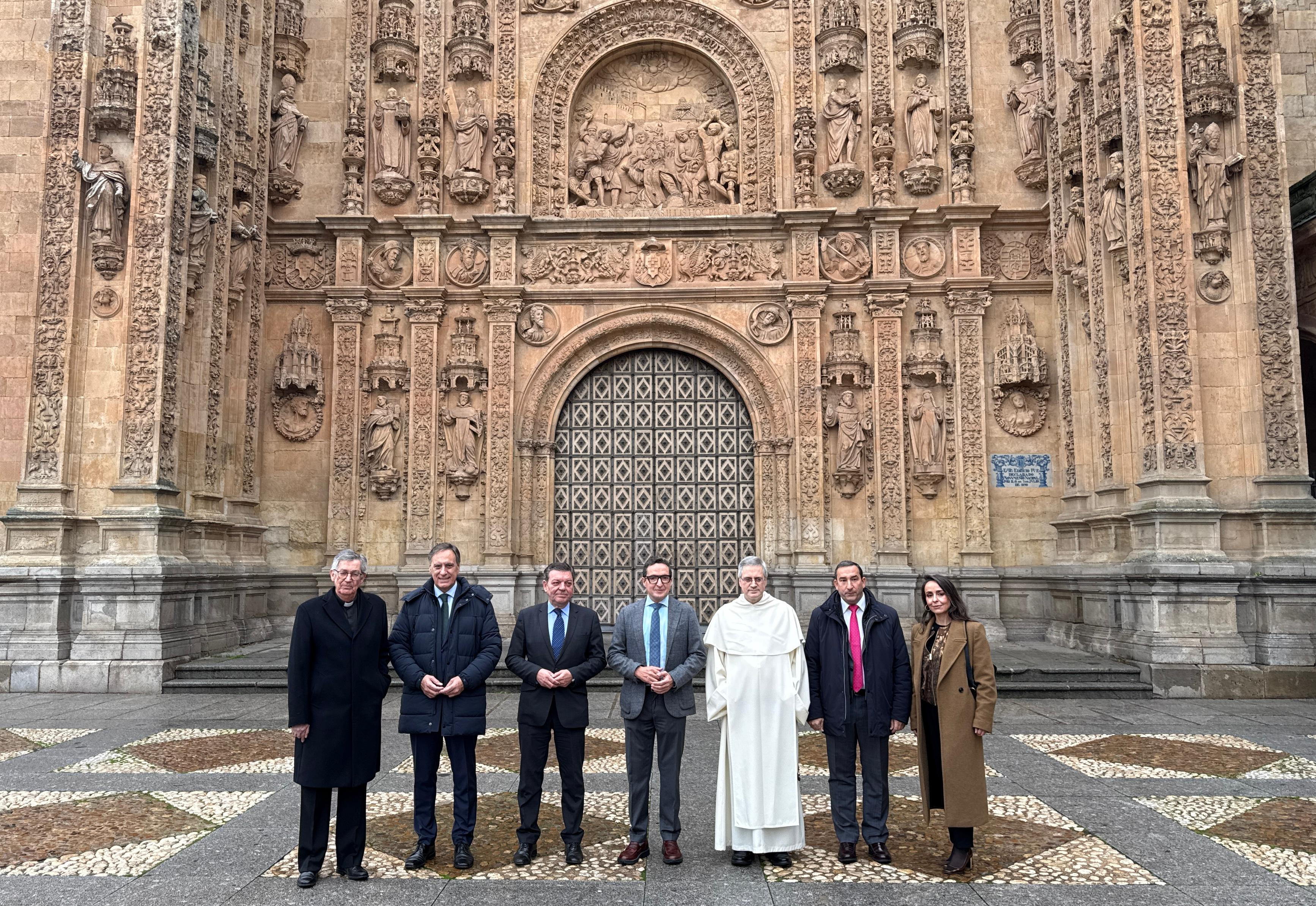 El Ayuntamiento de Salamanca, la Junta de Castilla y León, las universidades de Salamanca y Pontificia y la Orden de los Dominicos han rubricado hoy el protocolo para desarrollar en 2026 una serie de actos que conmemoren los 500 años de la Escuela de Salamanca, ya que en 1526 se produjo la incorporación de Francisco de Vitoria a la Universidad. Asimismo, se ha presentado la imagen promocional que acompañará la celebración de la efeméride. El protocolo ha sido rubricado por el alcalde de la capital, Carlos García Carbayo; el consejero de Presidencia, Luis Miguel González Gago; el rector de la USAL, Juan Manuel Corchado; el rector de la Pontificia, Santiago García-Jalón; y el prior de los Dominicos en Salamanca, Manuel Ángel Martínez.