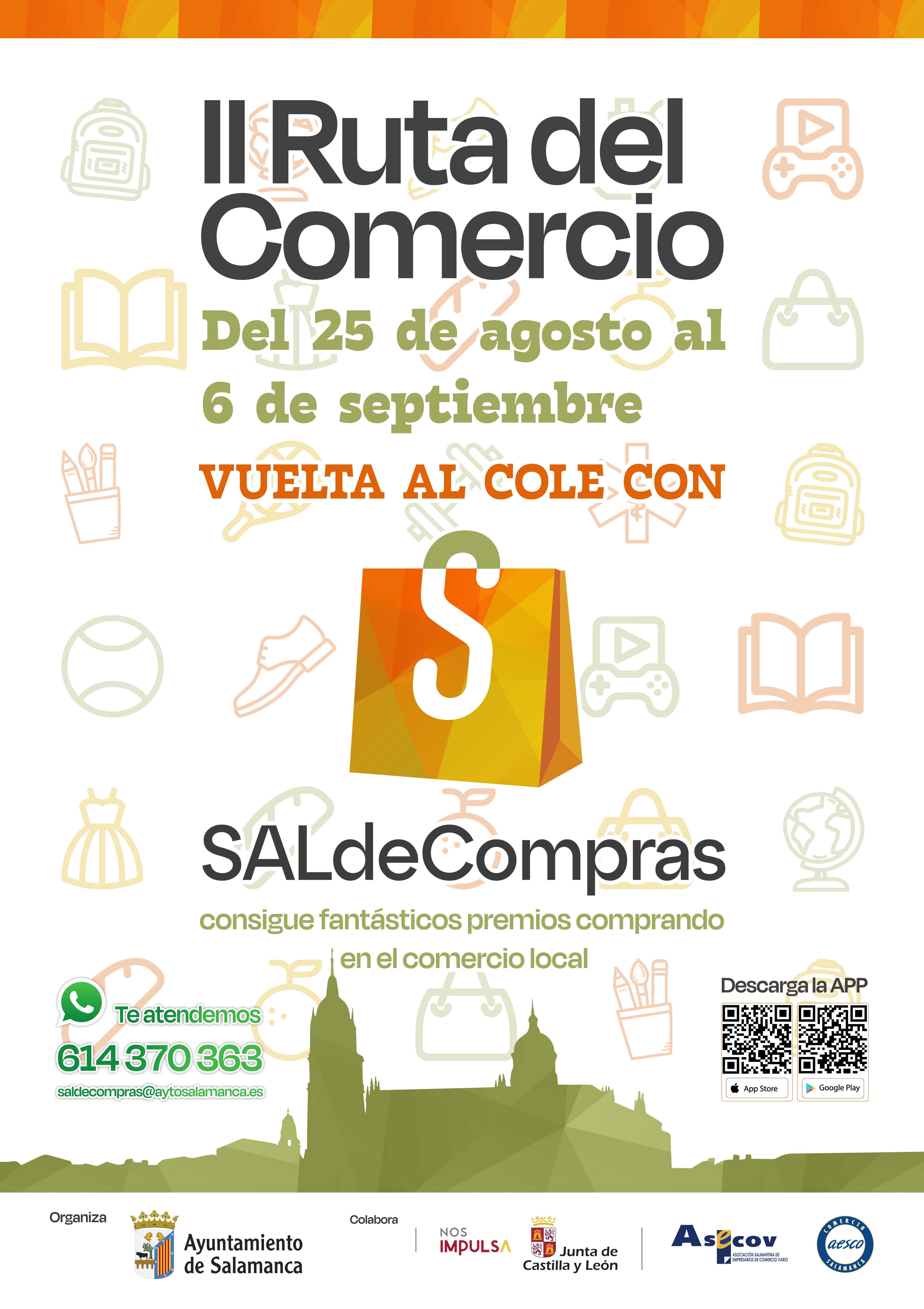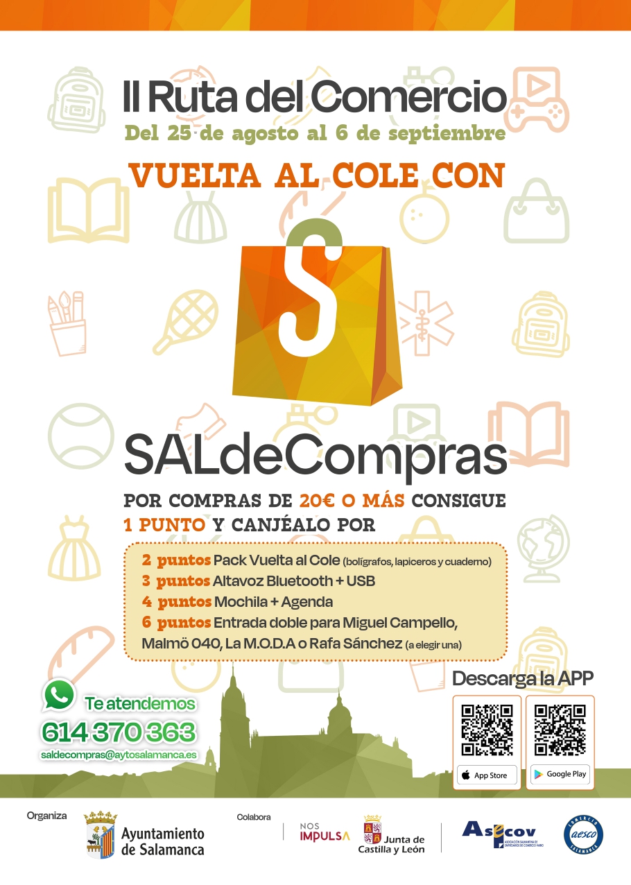 “SALdeCompras” es una marca creada para identificar diferentes actuaciones dirigidas a potenciar el comercio local salmantino. El Programa “SALdeCompras” trata de sensibilizar a la ciudadanía acerca de la necesidad de contribuir al mantenimiento del comercio local de proximidad de la ciudad, como generador de riqueza, creación de empleo y motor de la actividad económica del municipio, así como incentivar el turismo en la ciudad, ofertando ventajas que favorezcan el consumo en la ciudad de Salamanca.