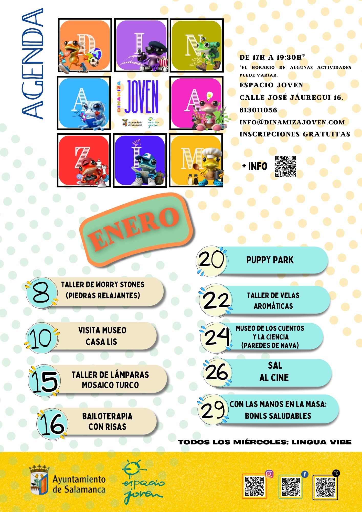 Las actividades, con carácter general, se realizarán en el Espacio Joven (C/José Jáuregui, 16) a partir de las 17:30, y las plazas se adjudicarán por riguroso orden de inscripción.