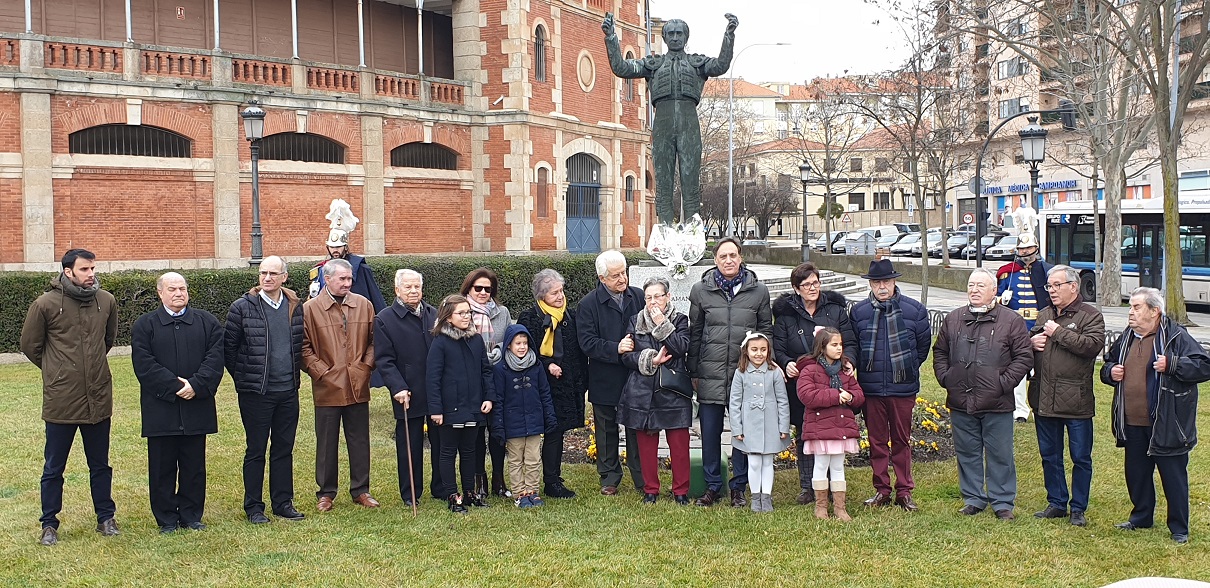 El alcalde de Salamanca, Carlos García Carbayo, y familiares del diestro Julio Robles han depositado hoy la ofrenda floral ante la escultura del matador, obra del artista Salvador Amaya, con motivo del décimo noveno aniversario de su fallecimiento.