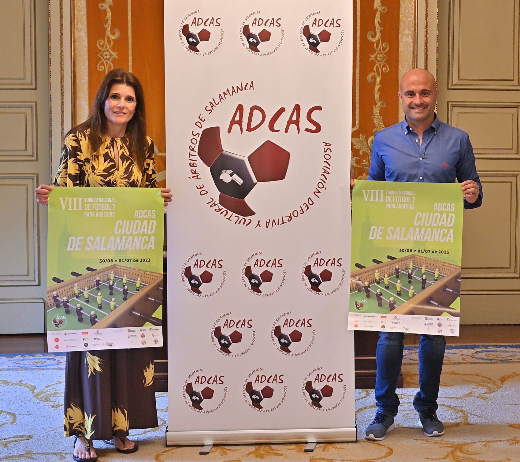 Salamanca acogerá los días 30 de junio y 1 de julio el VIII Torneo Nacional de Fútbol 7 para Árbitros ‘Ciudad de Salamanca’, que cuenta con la colaboración del Ayuntamiento de Salamanca. La concejala de Deportes, Almudena Parres, ha mantenido esta mañana un encuentro con el presidente de la Asociación Deportiva y Cultural Árbitros de Salamanca (ADCAS), Alfonso Vicente Moral, que está detrás de la organización de este evento que reunirá a alrededor de 300 participantes de toda España, cifra récord, tras un parón de cuatro años por la pandemia.