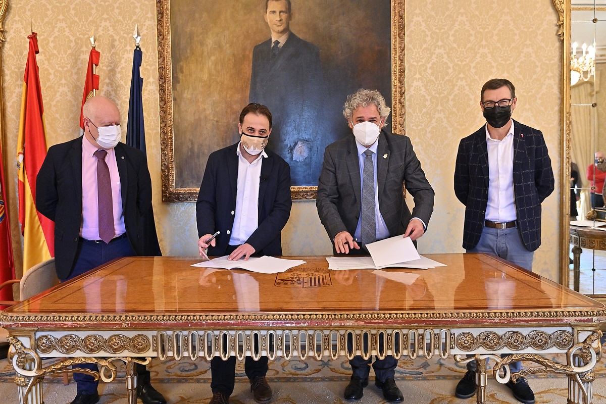 Los concejales de Turismo y Promoción Económica, Fernando Castaño Sequeros y Juan José Sánchez Alonso; el decano del Colegio de Abogados de Salamanca, Eduardo Íscar Álvarez y el director en Instituto de Mediación del Ilustre Colegio de Abogados de Salamanca, Gerardo Bueno Salinero, han firmado un convenio para la implantación de un servicio de mediación de calidad en materia de alquileres de locales de negocio. La medida sirve para apoyar desde el Ayuntamiento de Salamanca al tejido hostelero y comercial de la ciudad, ante las circunstancias provocadas por la crisis sanitaria del Covid.