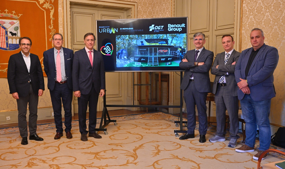 El alcalde de Salamanca, Carlos García Carbayo; el jefe provincial de Tráfico en Salamanca, Miguel Moreno; y el jefe de prensa de Renault, José Manuel Jáñez, han presentado hoy el programa URBAN 'e-Movilidad Segura y Sostenible', organizado por la Dirección General de Tráfico y el Grupo Renault, que estará ubicado en la Plaza de los Bandos desde el jueves 5 hasta el domingo 8 de mayo.