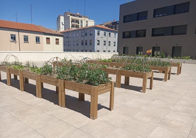 Situados en la terraza de la primera planta, los huertos no solo reverdecen un espacio inicialmente carente de naturaleza, sino que además ofrecen a sus usuarios una alternativa de ocio y encuentro vecinal junto con la pérgola habilitada en la zona, además de facilitar productos de proximidad y autoconsumo.