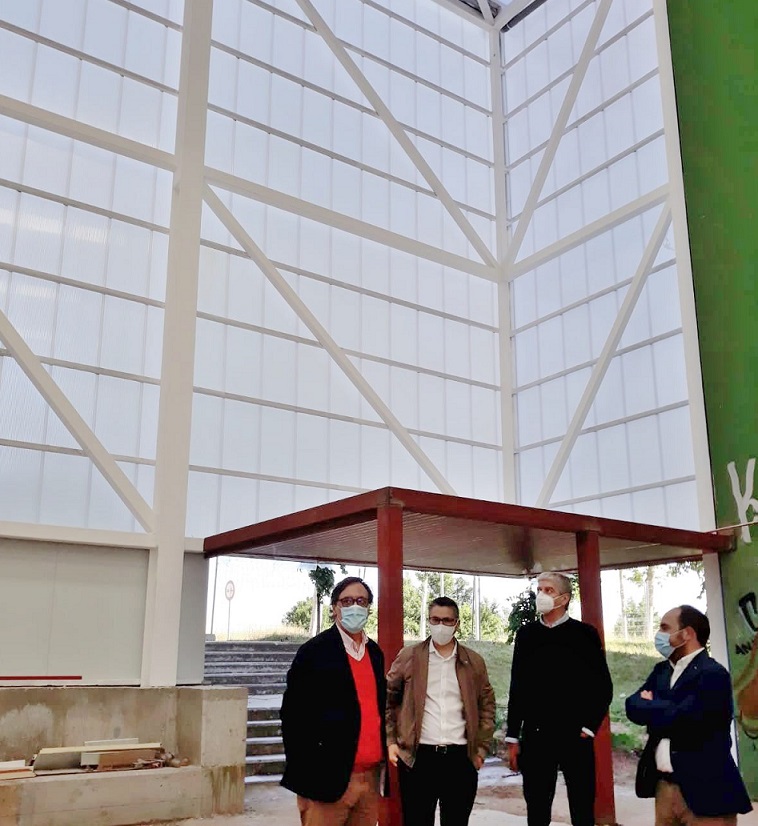 El alcalde, Carlos García Carbayo, ha visitado hoy las obras, que suponen una inversión municipal de 901.705 euros. Ya se han construido los cerramientos exteriores y cubierto el frontón con una estructura metálica, además de acometer una nueva instalación de calderas para la climatización.