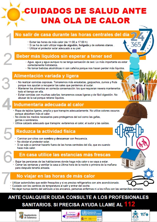 Por este motivo, el Ayuntamiento de Salamanca y el Colegio Profesional de Enfermería han impulsado una campaña de sensibilización a través de la cual se están divulgando diversos consejos para prevenir problemas de salud como consecuencia de este fenómeno, fundamentalmente, en las personas mayores.