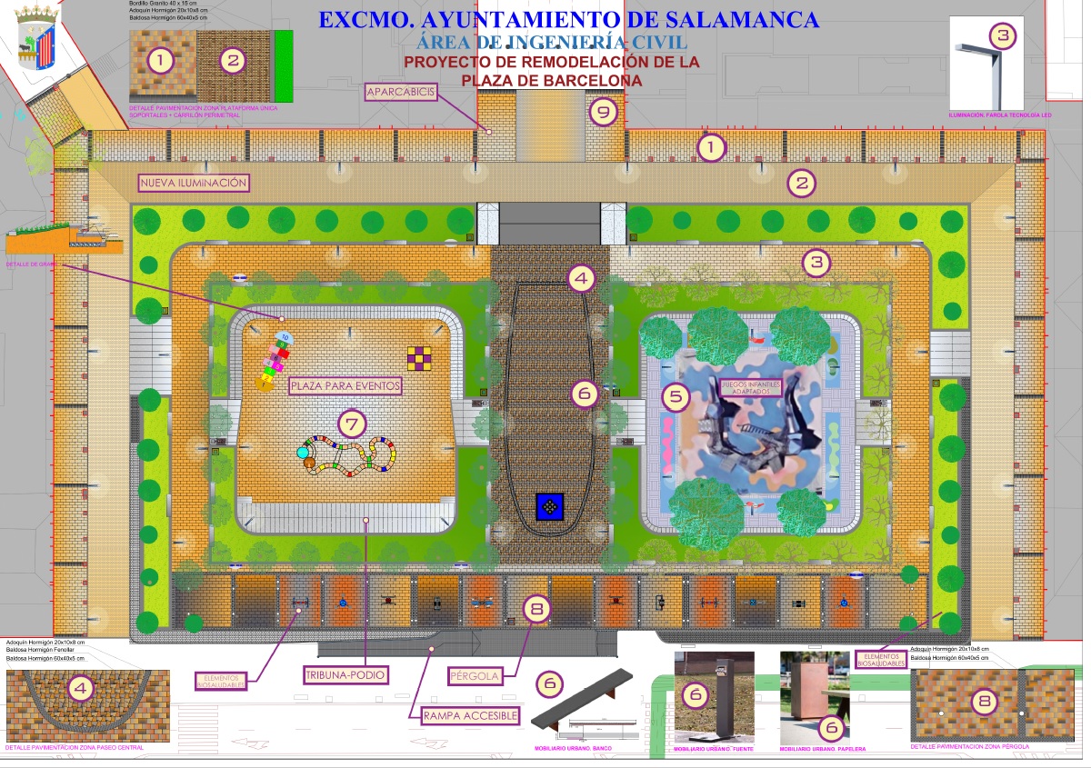 El anteproyecto inicial se ha enriquecido con propuestas sobre accesibilidad, eficiencia energética, arbolado, mobiliario urbano, juegos infantiles y aparatos biosaludables, entre otros aspectos. El resultado es que la plaza sea completamente accesible, disponga de nuevas zonas verdes y nuevas dotaciones potenciando la zona para niños e incluyendo elementos para personas con discapacidad. Y se creará un espacio central diáfano para eventos culturales, ferias o actuaciones como las que programa desde hace tres años cada verano el Ayuntamiento de Salamanca.