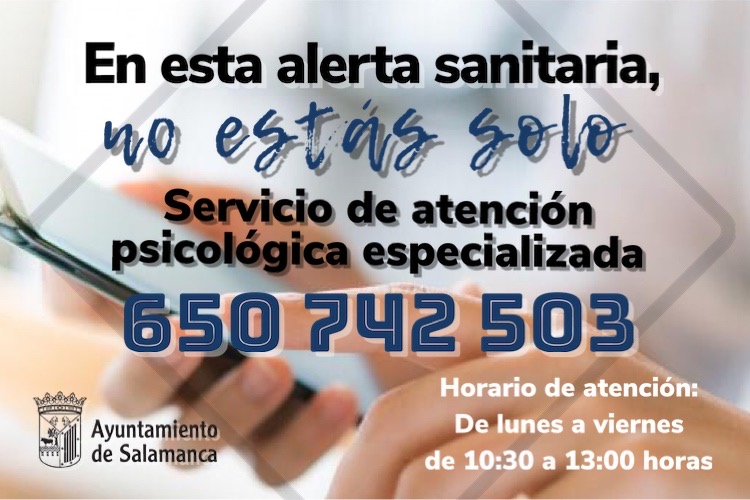 El Ayuntamiento de Salamanca, a través de la concejalía de Familia e Igualdad de Oportunidad, mantendrá hasta el final del estado de alarma el servicio de atención psicológica especializada que entró en funcionamiento el 1 de abril.