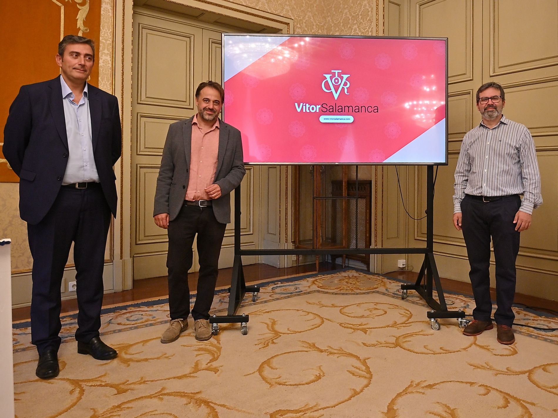 En el acto de presentación de la nueva plataforma acompañaron al concejal de Turismo, Fernando Castaño, el responsable de VitorSalamanca, Ricardo Criado, así como el vicepresidente de la Asociación Española de Agencias de Viaje, Pablo Parrilla.