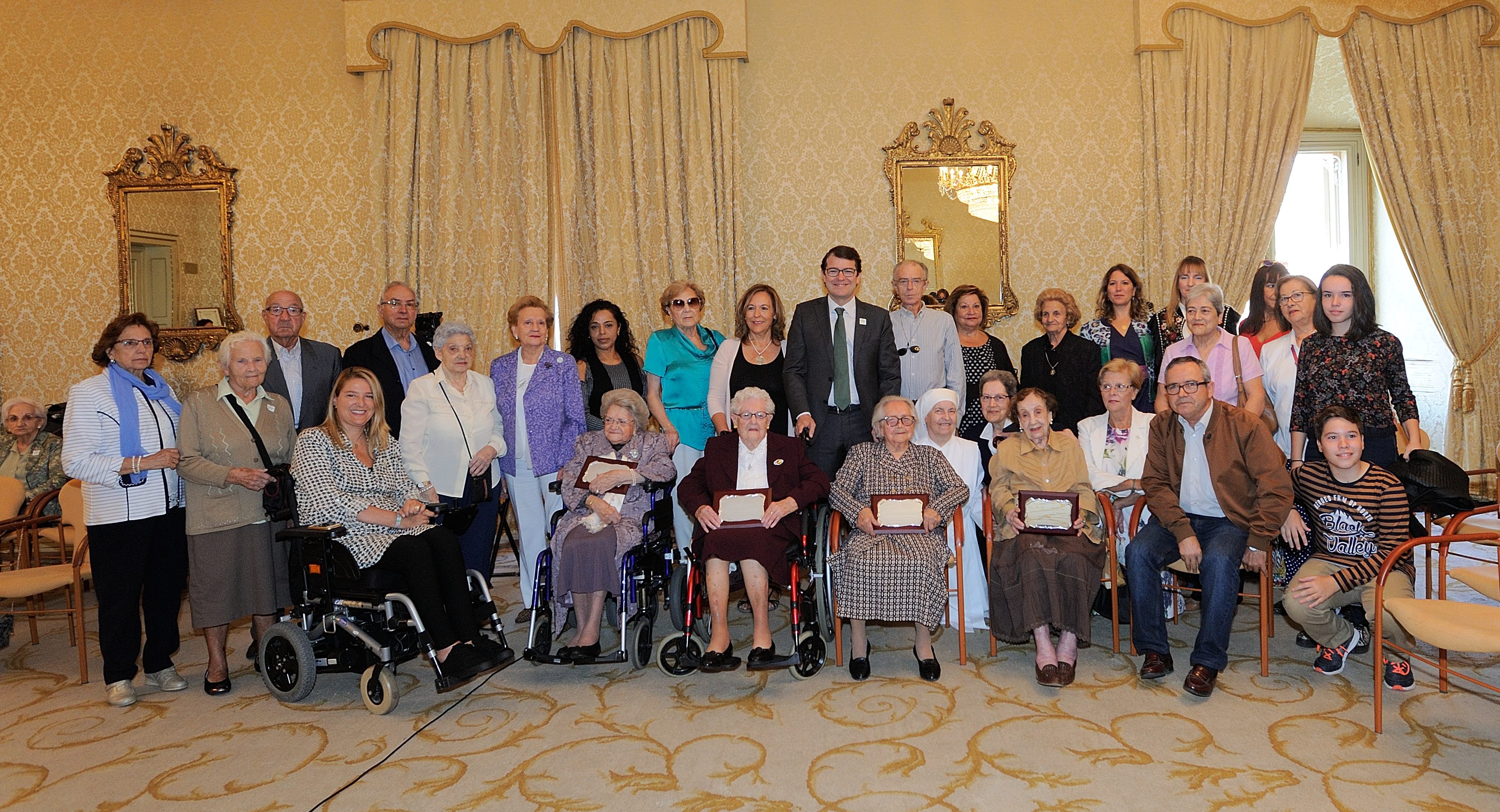 El alcalde de Salamanca, Alfonso Fernández Mañueco, ha entregado esta mañana una placa conmemorativa a cuatro salmantinas centenarias en el transcurso de un emotivo acto de homenaje con motivo de la celebración de las Ferias y Fiestas en honor a la Virgen de la Vega.