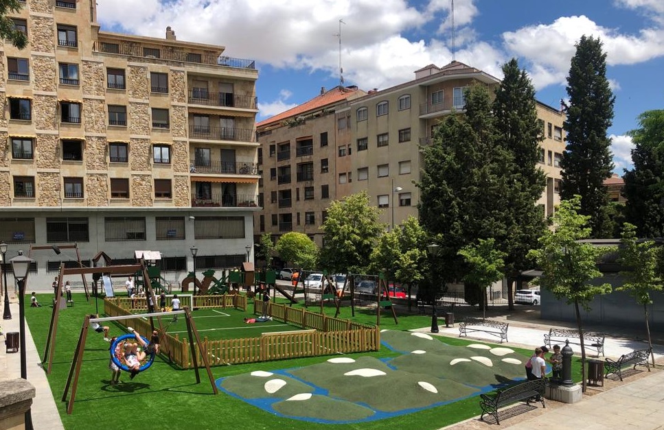 El Ayuntamiento también impulsará la mejora infantil más próxima a las viviendas en el Parque Ciudad Rodrigo, que contará con más espacios verdes. La pavimentará con caucho, la hará más accesible e instalará en la misma nuevos elementos entre los que se incluyen juegos adaptados para niños con discapacidad. Estas actuaciones se completarán con la creación de una nueva pradera de césped en la que se plantarán nuevos árboles, la reparación del pavimento, instalación de nuevos bancos, una fuente bebedero y una base para aparcar bicicletas.