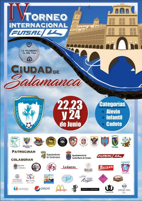 Cuatrocientos deportistas de España, Francia y Portugal se darán cita del 22 al 24 de junio en Salamanca en la cuarta edición del Torneo Internacional de Fútbol Sala que se disputará en los pabellones municipales de La Alamedilla, Río Tormes y Würzburg y en el pabellón municipal de la localidad vecina de Santa Marta de Tormes.