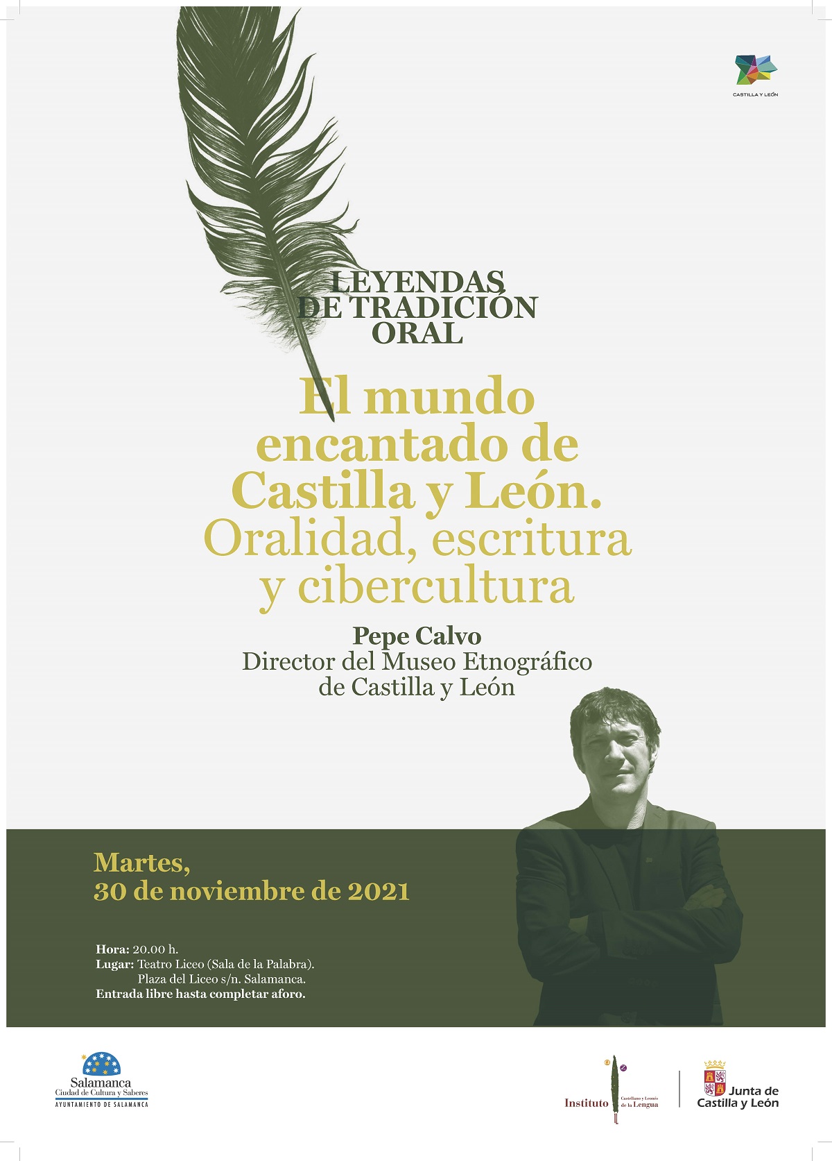 El Ayuntamiento de Salamanca y la Fundación Instituto Castellano y Leonés de la Lengua organizan el martes, 30 de noviembre, a las 20.00 horas, en la Sala de la Palabra del Teatro Liceo de Salamanca, el encuentro ‘Leyendas de Tradición oral’, cita que pretende acercarse y recuperar la abundante tradición oral existente en Castilla y León, especialmente en núcleos rurales, contando con las opiniones de especialistas. El director del Museo Etnográfico de Castilla y León, el zamorano Pepe Calvo, es el invitado de esta nueva cita con la tradición oral, cuya ponencia lleva por título ‘El mundo encantado de Castilla y León. Oralidad, escritura y cibercultura’.
