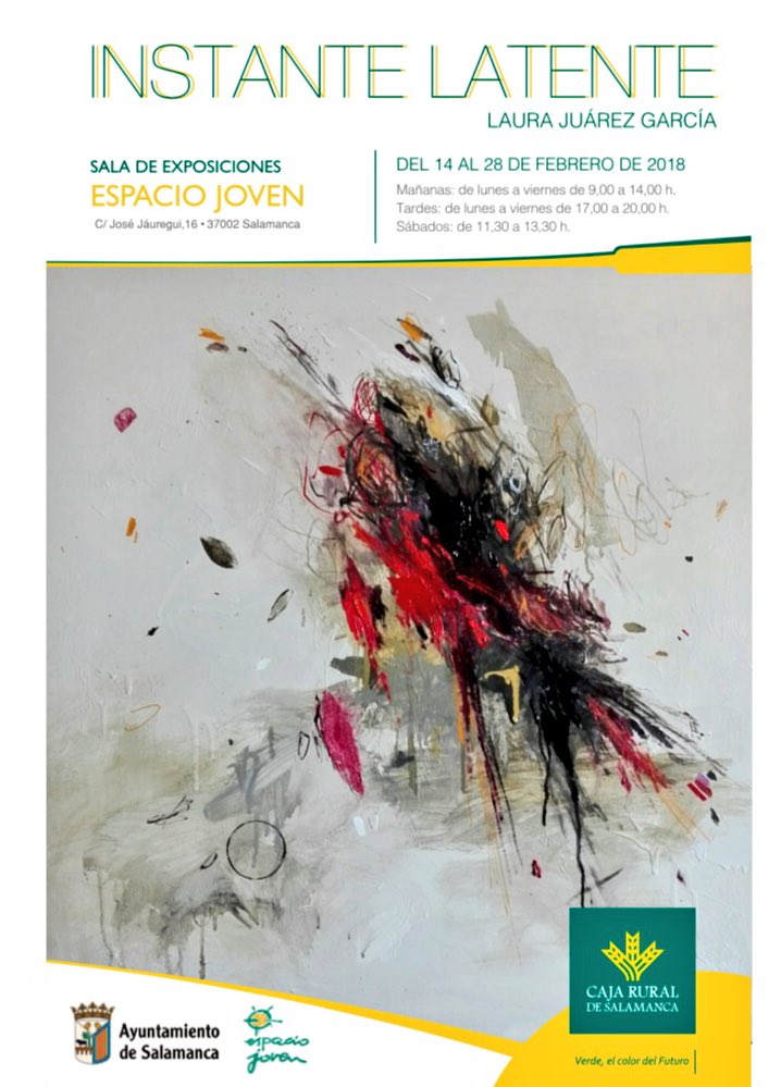 El Espacio Joven acoge hasta el 28 de febrero la exposición de pintura de la joven artista Laura Juárez García, licenciada en Bellas Artes por la Universidad de Salamanca, cuyo estilo se enmarca en el movimiento pictórico del expresionismo abstracto. Esta pintora está especializada en óleo, acrílico, collage y técnica mixta.