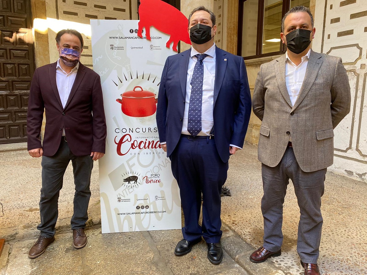 El concejal de Turismo, Fernando Castaño, y el diputado de Turismo de la Diputación de Salamanca, Javier García Hidalgo, han anunciado hoy la convocatoria de la IV edición del Concurso Internacional de Cocina con Ibérico. El Ayuntamiento de Salamanca, la Diputación de Salamanca y el portal gastronómico Gastroactitud organizan por cuarto año este concurso. Su objetivo es premiar a aquellos profesionales o estudiantes, amantes del ibérico, que se esfuerzan por elaborar presentaciones singulares y diferentes para promover el uso de la carne de ibérico en la hostelería. Esta cuarta edición, como ya ocurrió con la tercera, se adelanta un año a la celebración del Foro Internacional del Ibérico, que tendrá lugar en 2023. Se premiará la mejor receta con 5.000€ para el ganador y 2.000€ para el segundo clasificado.