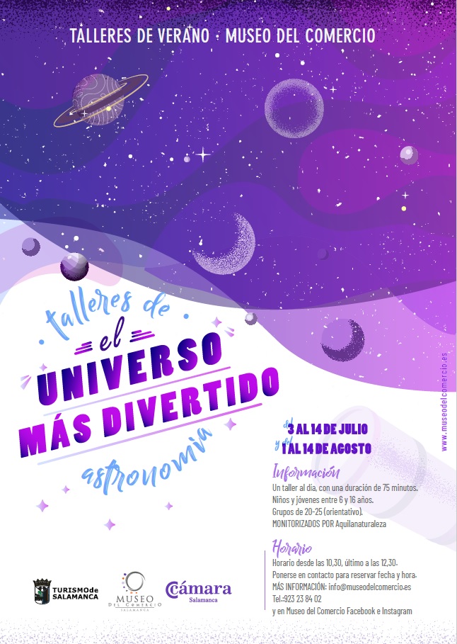 Del 3 al 14 de julio y del 1 al 14 de agosto, niños y jóvenes podrán disfrutar en el Museo del Comercio y la Industria de Salamanca, de los talleres de ‘El Universo más divertido’, donde podrán conocer las peculiaridades del universo que nos rodea.