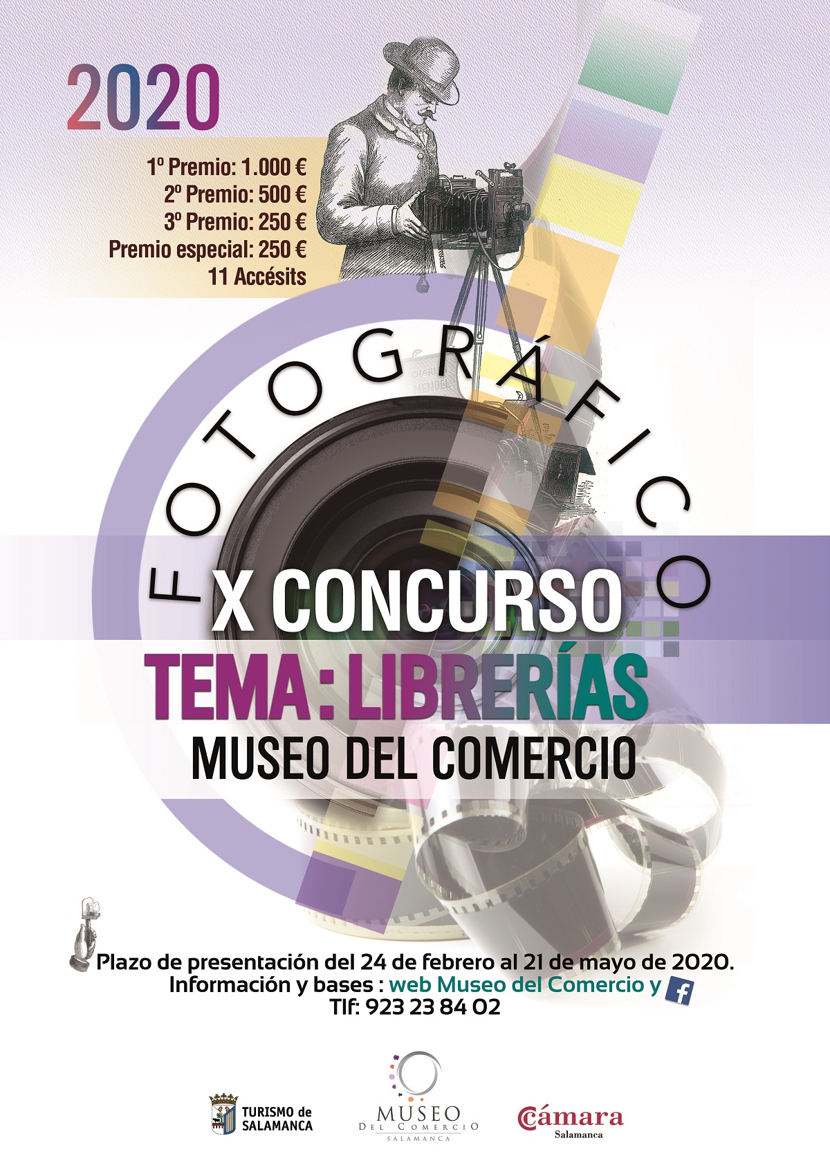 El Museo del Comercio y de la Industria de Salamanca convoca el concurso anual de fotografía que, en esta décima edición, tendrá como tema las librerías. Será objeto temático de esta décima convocatoria el comercio de libros, es decir, comercios, tiendas o espacios temporales o permanentes, donde se vendan libros. Quedarán fuera de tema los lugares donde únicamente se impriman, encuadernen o restauren libros, así como también aquella imagen que muestre algún tipo de libro descontextualizado de cualquier lugar de venta.