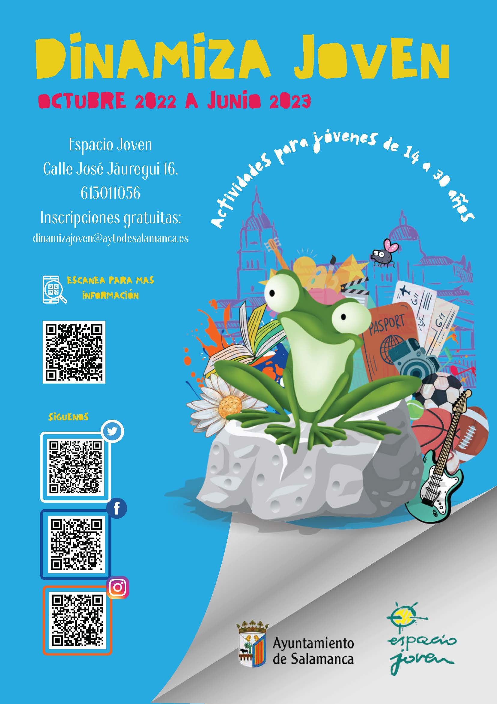 Asimismo, toda la programación de ‘Dinamiza Joven’, así como los horarios y la reserva de plazas se pueden consultar en la web del Ayuntamiento, en el área de Juventud a través de la dirección http://www.juventud.aytosalamanca.es/es/actividadesanuales/dinamizajoven/ y en las redes sociales del Espacio Joven en @jovenesalamanca. También se ha habilitado el correo electrónico dinamizajoven@aytosalamanca y el número de teléfono 923 123 119 para resolver cualquier tipo de duda sobre el programa.