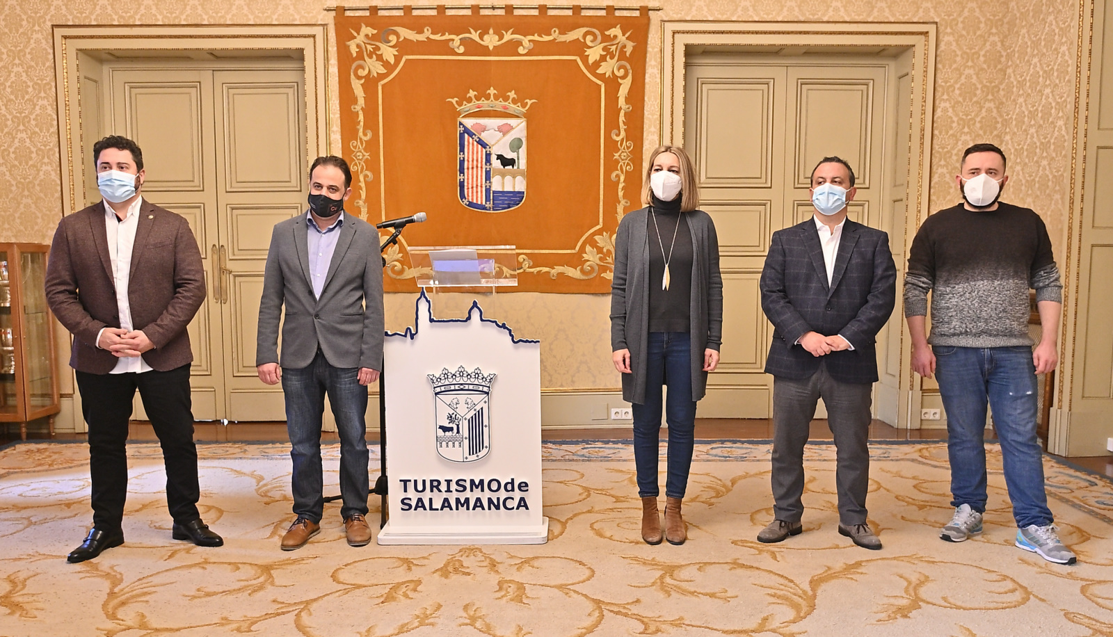 El concejal de Turismo del Ayuntamiento de Salamanca, Fernando Castaño; el diputado de Turismo de la Diputación Provincial de Salamanca, Javier Hidalgo; la directora general de Turismo de la Junta de Castilla y León, María Estrella Torrecilla Crespo y el presidente de Maestros Cocineros de Castilla y León, César Boal, han dado a conocer los detalles de la final del XIV Campeonato de Cocina de Castilla y León, que se celebra por primera vez en Salamanca. La cita será los próximos 14 y 15 de diciembre, en el Palacio de Congresos.