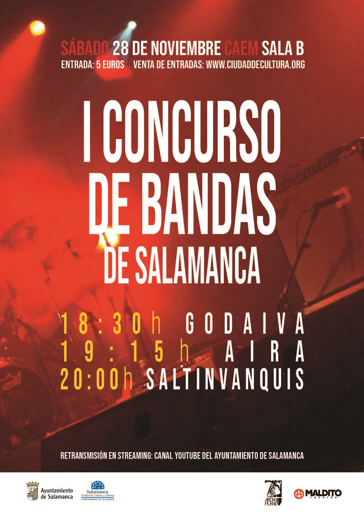 Este sábado se celebrará la final del I Concurso de Bandas, organizado por el Ayuntamiento de Salamanca en colaboración con Arcane Planet Studios, con la actuación de los tres grupos finalistas: Godaiva, Aira y Saltinvanquis.