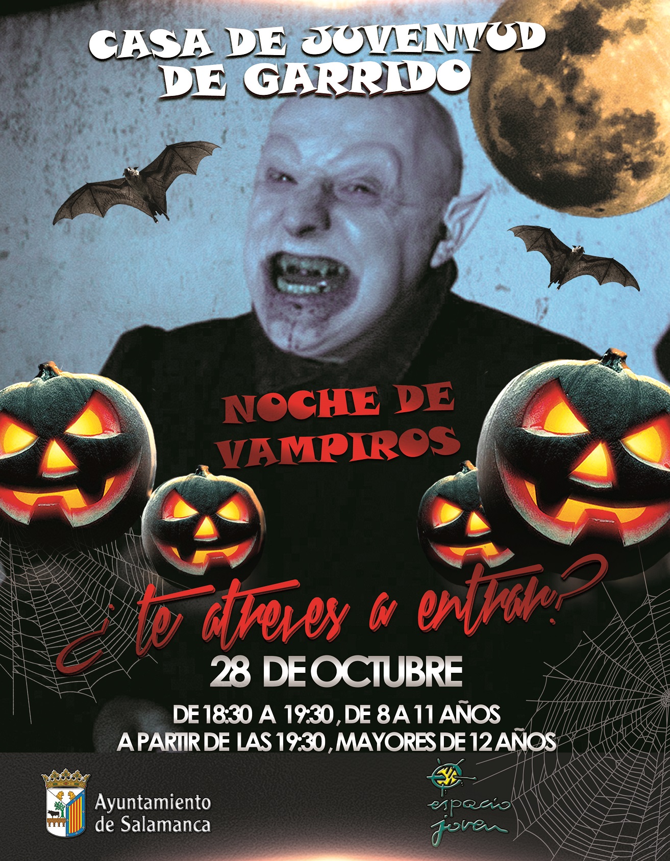La sala polivalente de la Casa de Juventud de Garrido celebrará una fiesta de Halloween el próximo viernes, 28 de octubre, con una ‘Noche de los Vampiros’, una novedosa y gratuita actividad que se enmarca dentro del compromiso del Ayuntamiento de Salamanca con el tiempo libre de la infancia y la juventud y con la que se pretende, además, revitalizar este espacio asociativo y cultural en el que tienen su sede 10 asociaciones juveniles y abierto a cualquier otro colectivo que lo solicite.