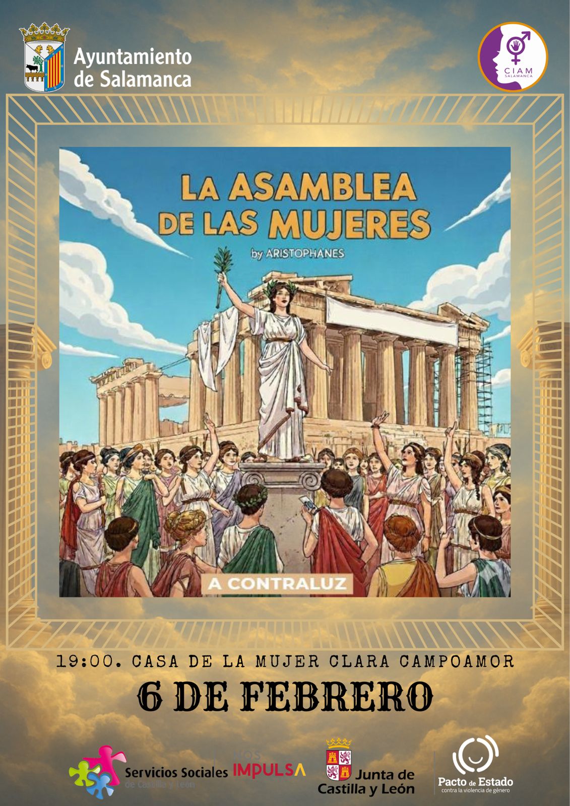La Casa de la Mujer ‘Clara Campoamor’ del Ayuntamiento de Salamanca acogerá el viernes 6 de febrero, a las 19:00 horas, la representación teatral ‘La asamblea de las mujeres’, de Aristófanes, con entrada libre hasta completar aforo.