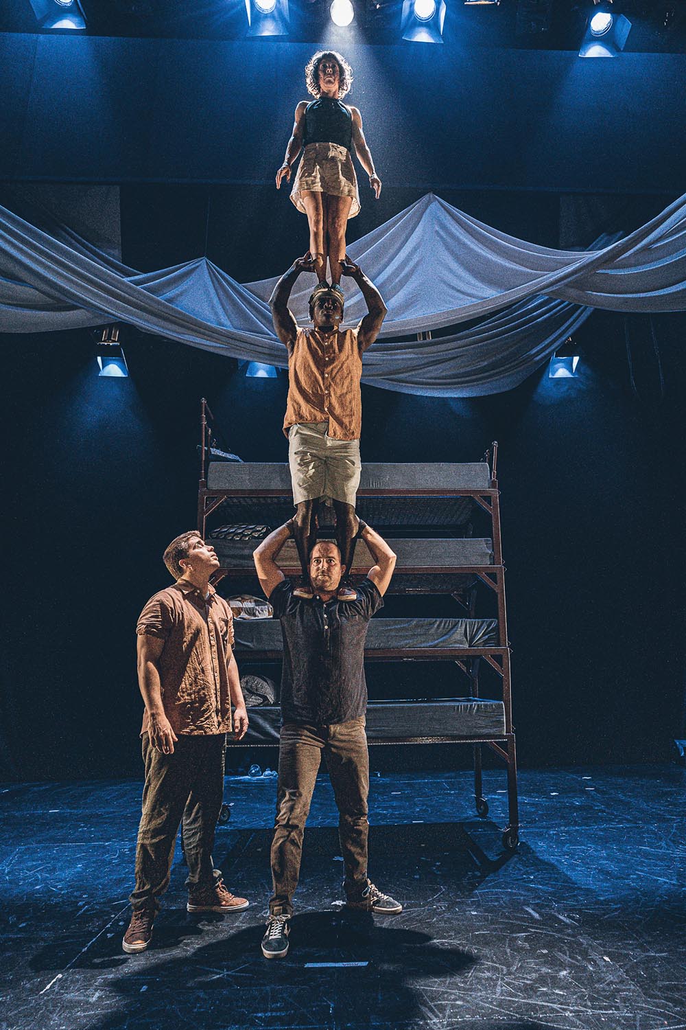 Cuatro artistas y cuatro camas se convierten en material conductor de sueños a través de malabares en alturas, verticales, acrobacia, banquina y portes acrobáticos.
