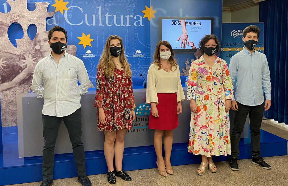 La concejala de Cultura del Ayuntamiento de Salamanca, Mª Victoria Bermejo, ha presentado esta mañana un nuevo estreno absoluto de una compañía salmantina. En esta ocasión de trata de la obra “De(s) Madres”, una producción de la compañía La Bulé que se estrenará este fin de semana en la Sala B del Caem. Está programada una función el día 5 y otra el día 6 y para ambas las entradas están agotadas. Esta obra ha sido escrita por Esther Lázaro, dirigida por Zoe Martín e interpretada por Teseo Marlago y Marta Higelmo.
