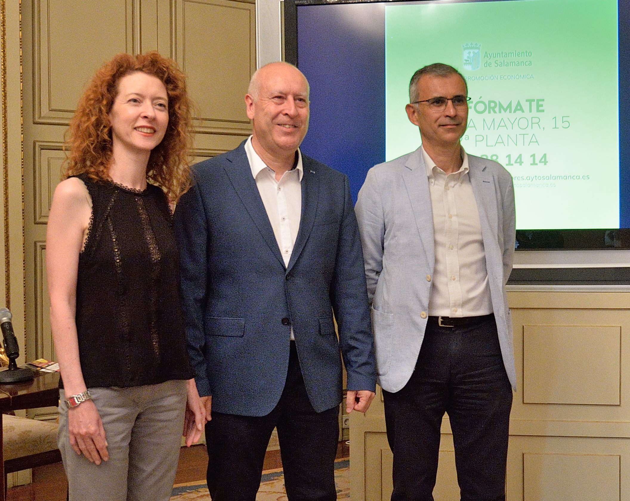 Por su parte, el concejal de Promoción Económica, Juan José Sánchez Alonso, acompañado del director de programas de la Escuela de Organización Industrial, Luis Sánchez Henríquez y de responsables de las empresas colaboradoras (Msd, Geldesa, Helcesa, Kimberly, Sumate, Internacional Web y Oxígeno Digital) ha presentado una nueva iniciativa laboral para jóvenes basada en programas de formación, que ponen en marcha dos cursos piloto, dotados con un presupuesto de 150.000 euros. De esa forma, el Ayuntamiento refuerza su apuesta por la inserción laboral de jóvenes en empresas salmantinas, permitiéndoles su adaptación al puesto de trabajo no solo con una formación necesaria para su acceso sino además con bolsa de prácticas remuneradas en empresas colaboradoras.