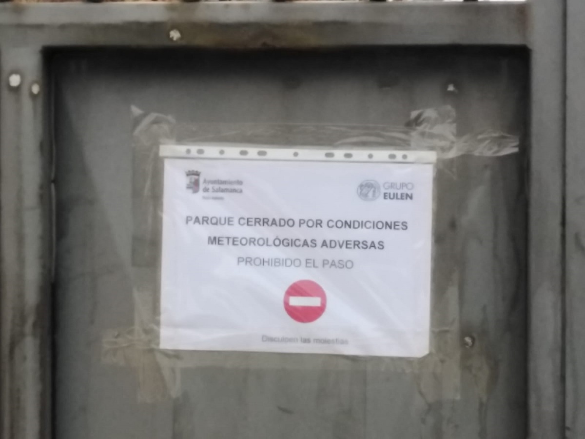 Debido al aviso de nuevas rachas durante este lunes, el Ayuntamiento de Salamanca mantiene una serie de medidas preventivas para garantizar la seguridad de los peatones. En concreto, se ha cerrado la zona arbolada de la Ciudad Deportiva de la Aldehuela, el Huerto de Calixto y Melibea, el Parque de los Jesuitas, el Parque de Huerta Otea, el Jardín de la Merced y la zona infantil de La Alamedilla, y se han encintado otros parques, en los que se prohíbe entrar. Esta medida permanecerá activa hasta que las rachas de viento y las condiciones climatológicas adversas remitan y no supongan ningún riesgo para la población por caída de ramas.