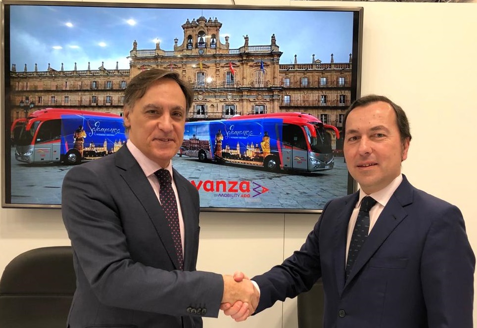El alcalde de Salamanca, Carlos García Carbayo, y el director de Movilidad Interurbana de Avanza, José Luis Román, han firmado esta misma mañana en Fitur la renovación del convenio de colaboración que les une con el fin de seguir promocionando la ciudad salmantina durante el año 2020, impulsando de esta manera su legado patrimonial e histórico.