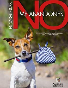 Bajo el lema “No me abandones en vacaciones”, el Ayuntamiento persigue sensibilizar a los salmantinos de la responsabilidad de tener una mascota e invita a los vecinos al disfrute de las vacaciones en compañía de las mascotas o su custodia en lugares adecuados durante el verano.