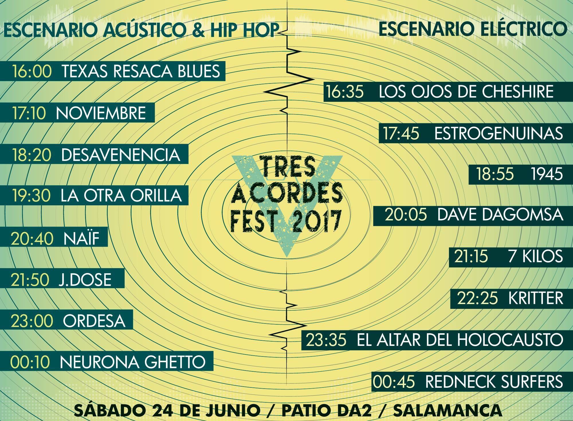 El Patio del DA2 acogerá mañana, a partir de las cuatro de la tarde, la quinta edición de Tresacordesfest, un festival que se consolida una año más como la cita más importante para la música de Salamanca. Su principal objetivo es apoyar la escena local con la participación de bandas formadas en la ciudad o con integrantes viviendo en ella.