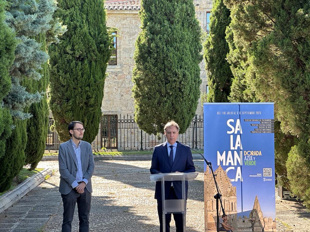 El alcalde de Salamanca, Carlos García Carbayo, ha presentado hoy los detalles del programa turístico estival ‘Salamanca Dorada, Azul y Verde’ que ofrece a salmantinos y visitantes 27 actividades para todos los públicos del 1 de julio al 3 de septiembre.