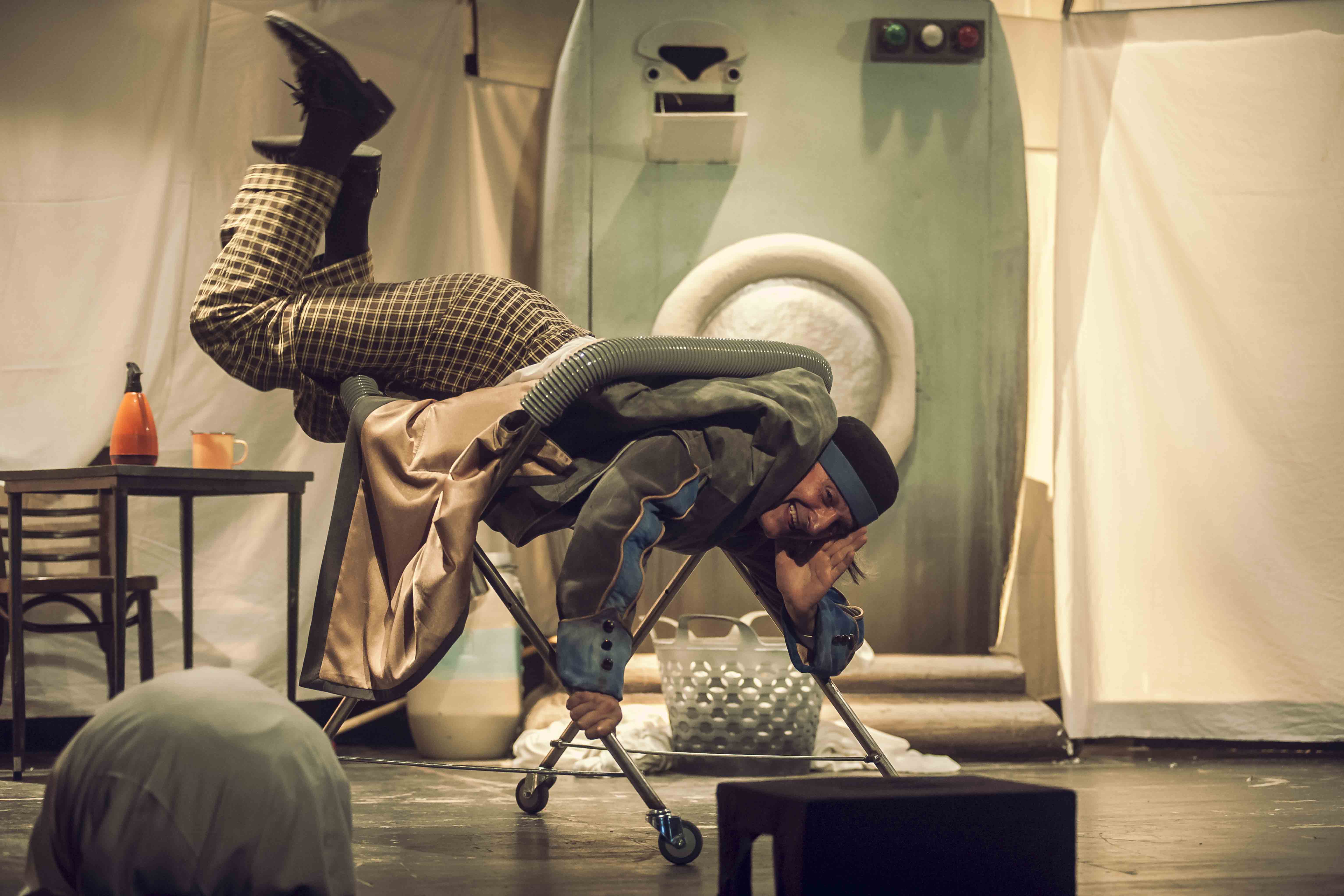 En el último sótano del ITALINO GRAND HOTEL está la lavandería. Allí, un personaje solitario lava, plancha y perfuma la ropa. Vive solo, sueña entre sábanas y esconde la soledad conversando con las máquinas y jugando con su propia sombra.