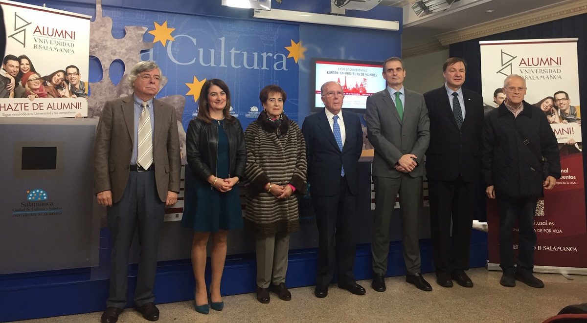 El ciclo lo inaugura esta tarde Marcelino Oreja Aguirre, jurista, político, diplomático y exministro de Asuntos Exteriores. Le presentará el periodista José Luis Fuentecilla, subdirector de los informativos de Mediaset España y presidente de la Junta Directiva de Alumni-USAL. Su intervención versará sobre “Valores europeos: destino y vocación de España”.