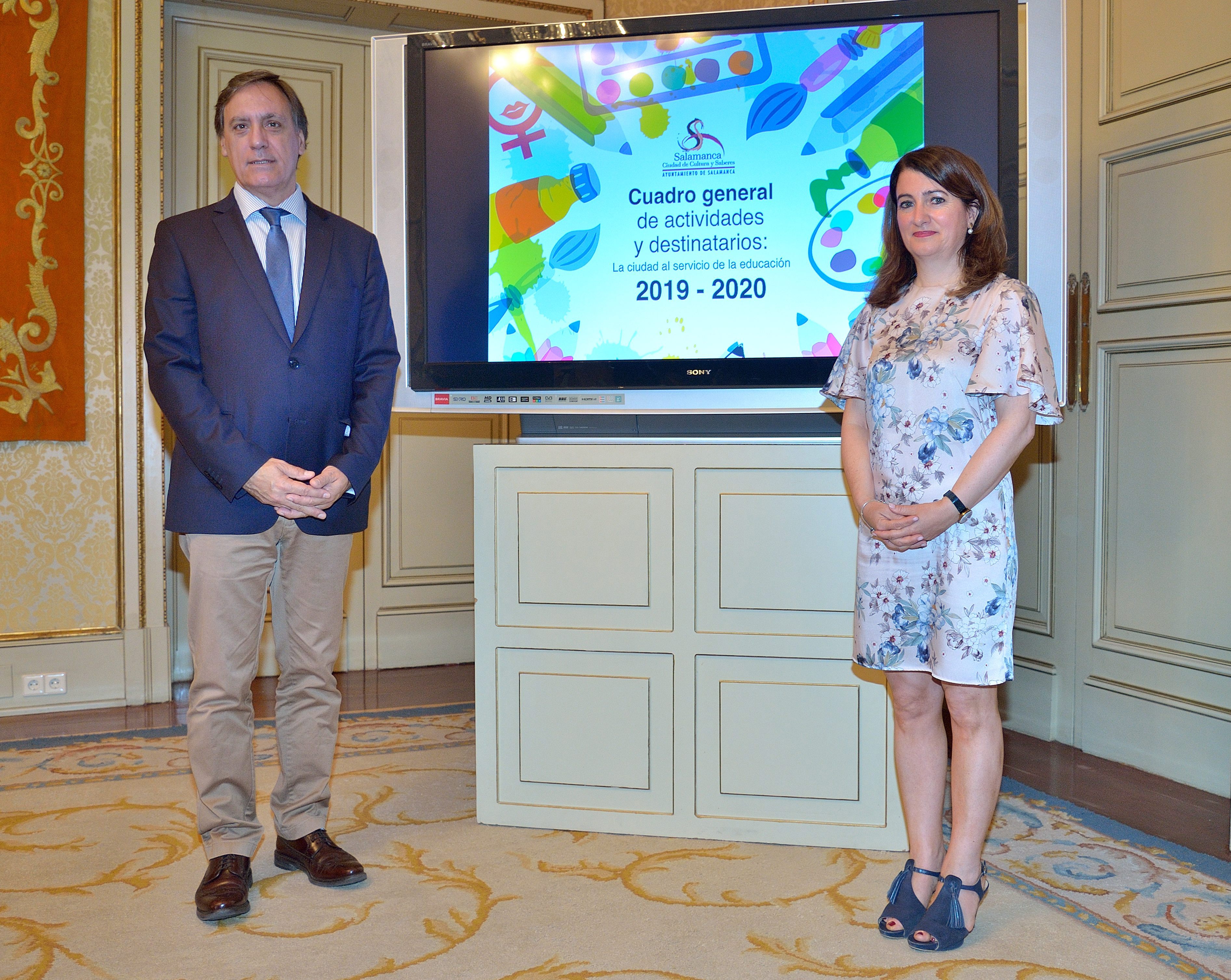 El alcalde de Salamanca, Carlos García Carbayo, ha presentado esta mañana la programación de actividades educativas que el Ayuntamiento, a través de la Fundación Municipal Salamanca Ciudad de Cultura y Saberes, ha elaborado para el curso 2019/2020. Una programación de 316 actividades dirigidas a los escolares, a sus familias y también a los profesores, lo que supone 25 actividades más que el curso que acaba de finalizar. Actividades que abarcan todas las etapas educativas: Infantil, Primaria, Secundaria, Bachillerato y Formación Profesional.