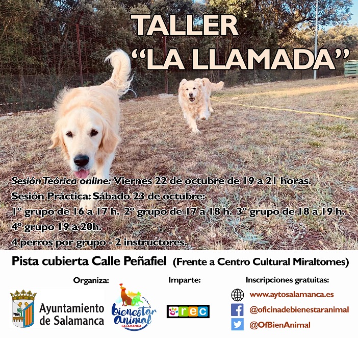 La Oficina de Bienestar Animal del Ayuntamiento de Salamanca, de la que es responsable la concejala Ana Suárez, ha programado para este fin de semana un nuevo taller formativo denominado ‘La llamada’. Está dirigido a todas aquellas personas que quieran conocer técnicas efectivas para que su perro responda adecuadamente a su llamada, ya que es uno de los comandos básicos que el perro debe conocer para disfrutar de sus actividades o incluso proteger su seguridad evitándoles situaciones peligrosas.