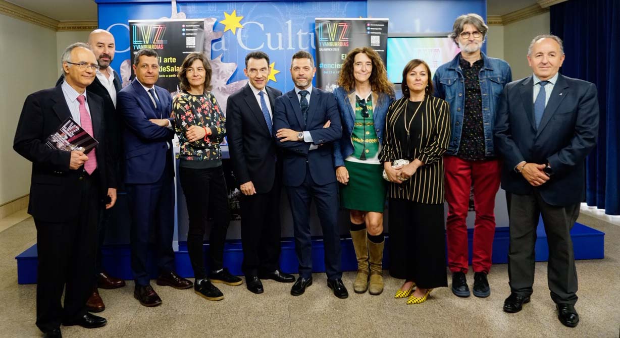 El concejal de Cultura, Turismo y Festejos del Ayuntamiento de Salamanca, Julio López Revuelta, ha presentado hoy en el Teatro Liceo la programación de +LUZ 2019 junto a los directores de los espacios participantes en la cuarta edición del festival Luz y Vanguardias, que tendrá lugar del 13 al 16 de junio gracias al apoyo del Ayuntamiento de Salamanca y la colaboración activa de Iberdrola.