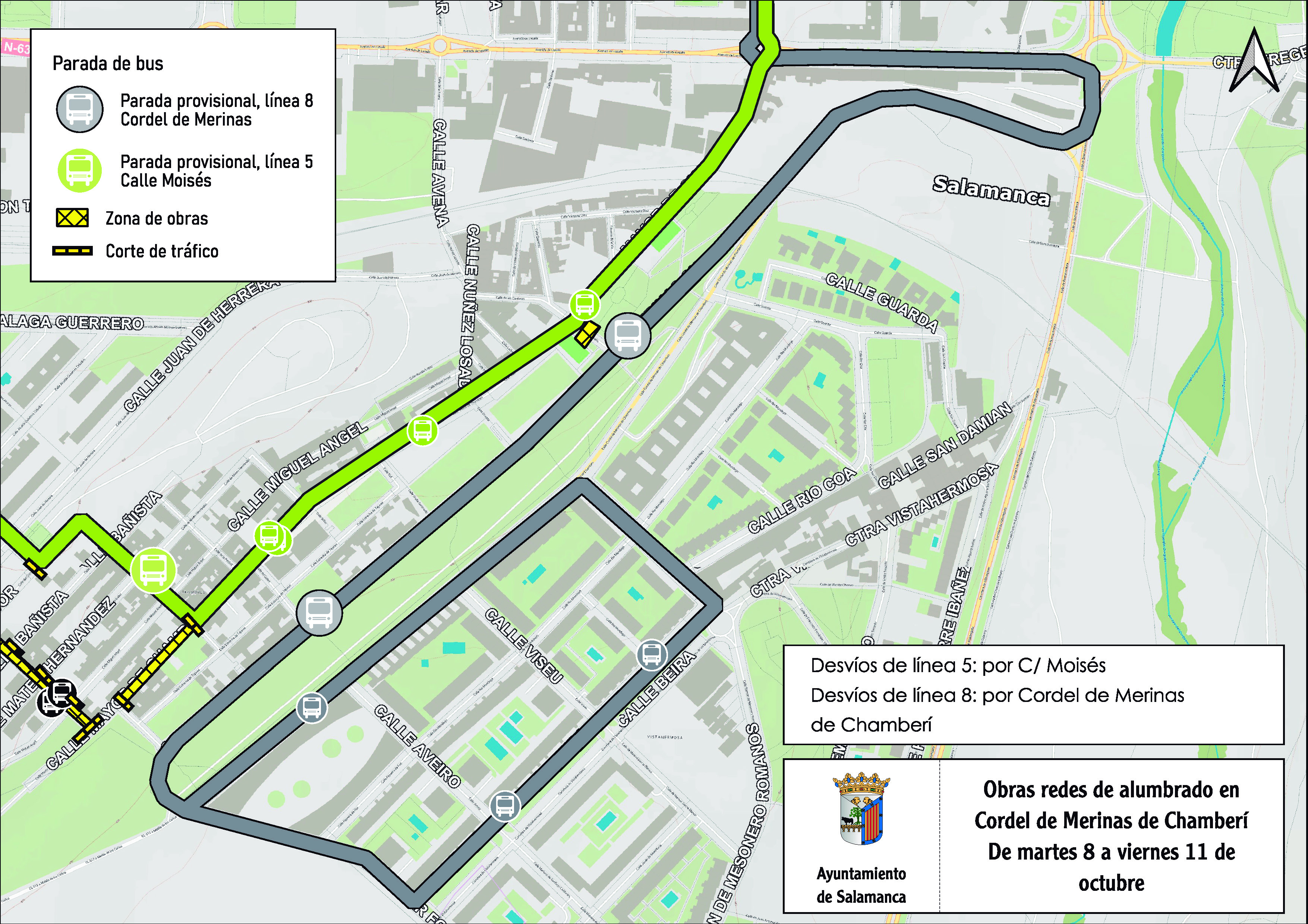 En concreto, la línea 5 se desviará por la calle Moisés mientras que la línea 8 lo hará a través de la calle Cordel de Merinas de Chamberí.