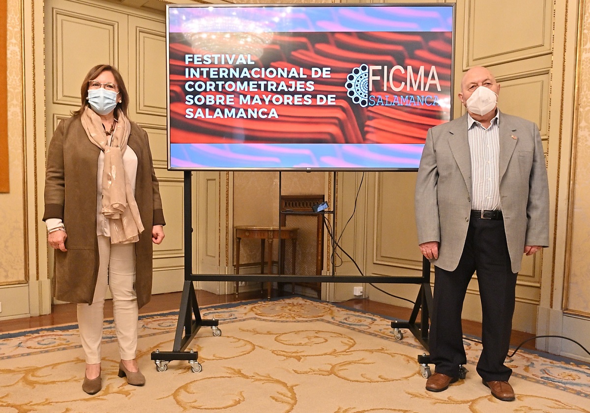 La concejala de Mayores en el Ayuntamiento de Salamanca, Isabel Macías, y el presidente de la Federación de Asociaciones de Mayores de Salamanca (FAMASA), Francisco Gómez, han presentado hoy la sexta edición del Festival Internacional de Cortometrajes sobre Personas Mayores -FICMA-. Una iniciativa que este año recupera su formato tradicional después de que en 2020 tuviera que celebrarse íntegramente online como consecuencia de la pandemia del coronavirus.