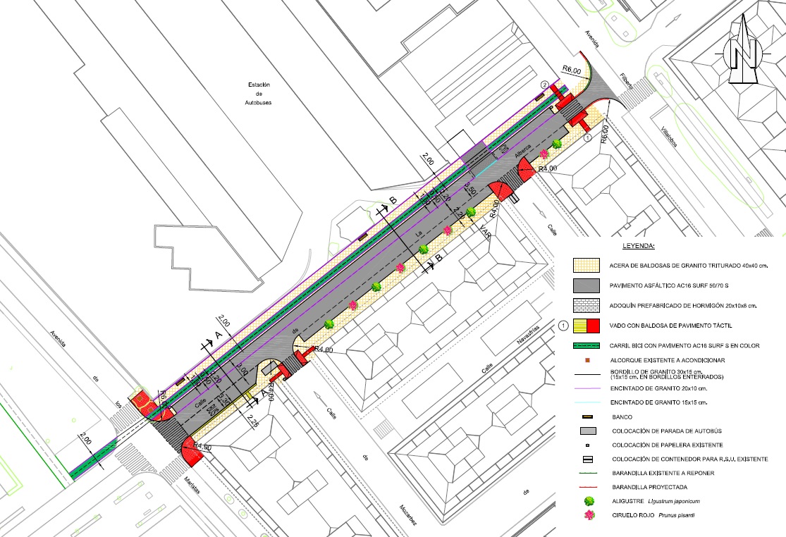 El pavimento será renovado completamente, pues en la actualidad se encuentra muy deteriorado, mejorando en la comodidad de la circulación de vehículos y la durabilidad del asfalto. Se incluye además una parada de autobuses con marquesina junto al cruce con la calle Mozárbez.